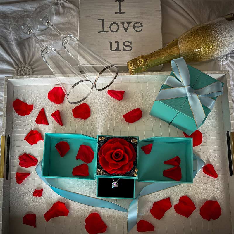 I bought thePreserved Rose Jewelry and Necklace Set as a gift, I was looking for something different, jewelry she could wear everyday. These are perfect. And the presentation is so beautiful. The Rose box with is very impressive. I can't wait wait to present her with my gift!